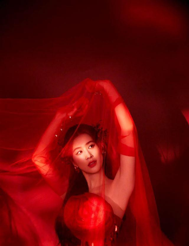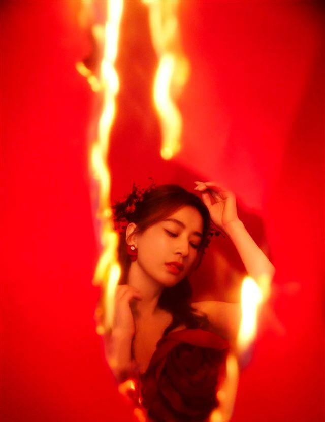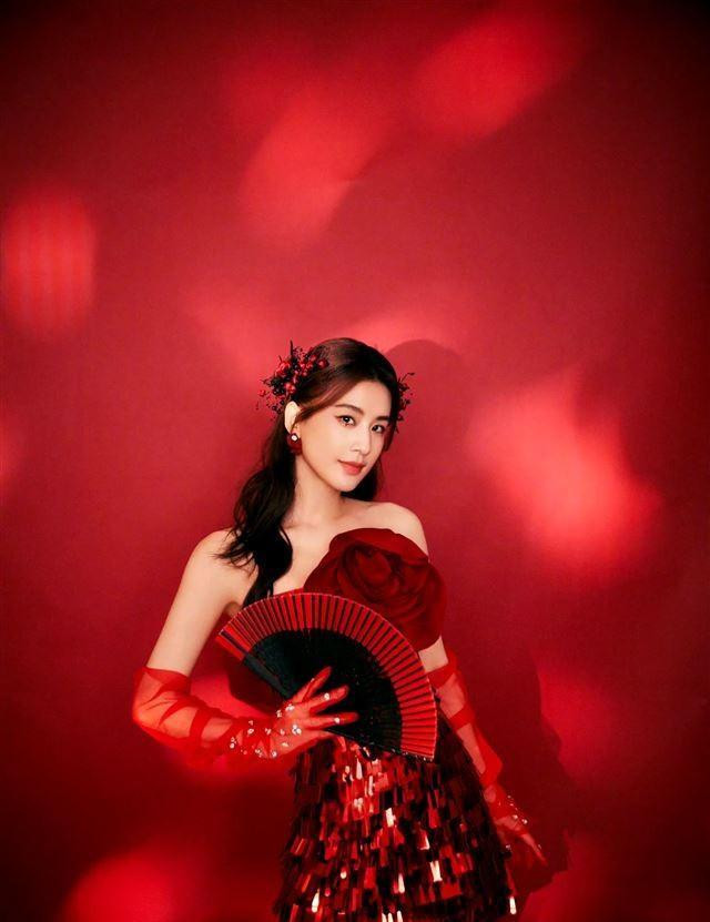 在这些美照中,她穿着一身中国红的亮片短裙,整个人闪耀着光彩。
